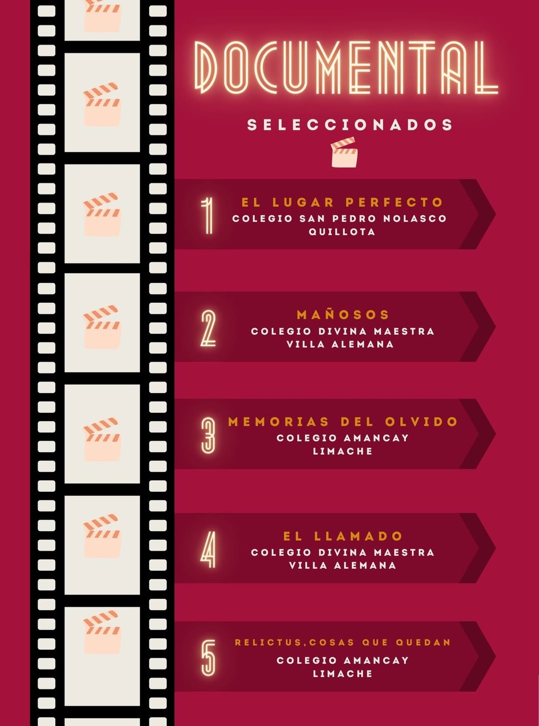 LUNES 01 DE DICIEMBRE: Con enorme alegría celebramos al equipo creador del documental “Memorias del Olvido”, quienes obtuvieron el Primer Lugar en la categoría Documental en el Festival de Cine Escolar CLAQUETA ESCOLAR 2025.