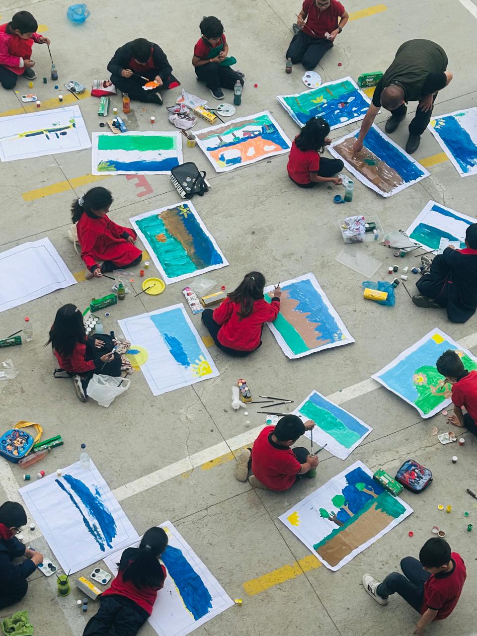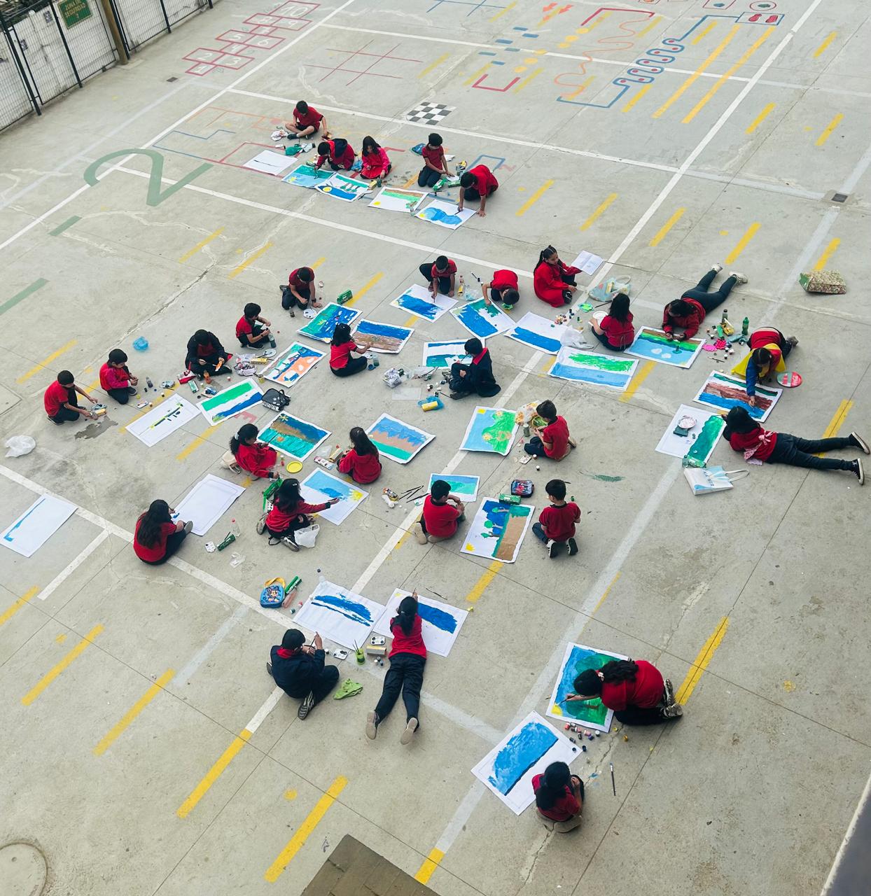 JUEVES 20 DE NOVIEMBRE: Los estudiantes de 2° Básico transformaron el patio de básica en un gran taller creativo al aire libre, trabajando en la asignatura de Artes junto al docente Eugenio Medina.